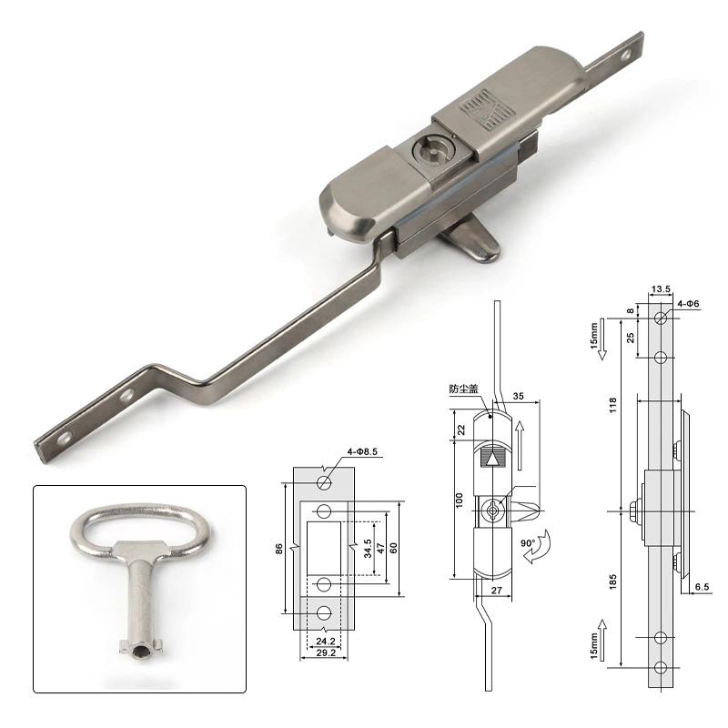 यस लकको प्रकार्य ठाडो डन्डा संयन्त्रको माध्यमबाट सुरक्षित गरिएको छ, विद्युतीय क्याबिनेट वा सर्भर रैकका लागि विस्तृत सुरक्षा प्रदान गर्दछ। उत्पाद डिजाइन रिभलल क्याबिनेट र मानक मन्त्रिपरिषद् निकायको साथ उपयुक्त छ, र स्थापनाले ढोका ढाँचालाई असर गर्दैन। लक शरीरले सरलीकृत मर्मतको लागि धुलो कभर सुविधा दिन्छ।
